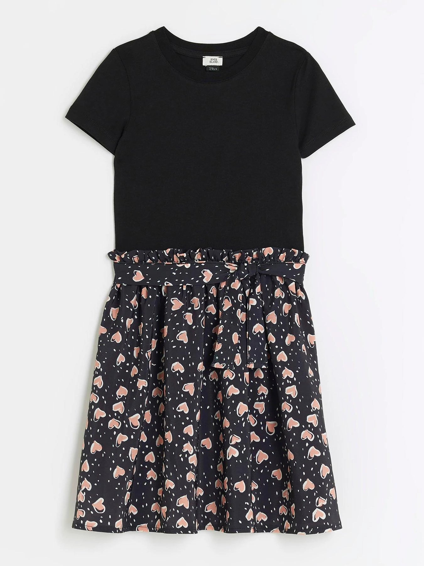 River Island Girls Heart Print T-Shirt Dress – Black
